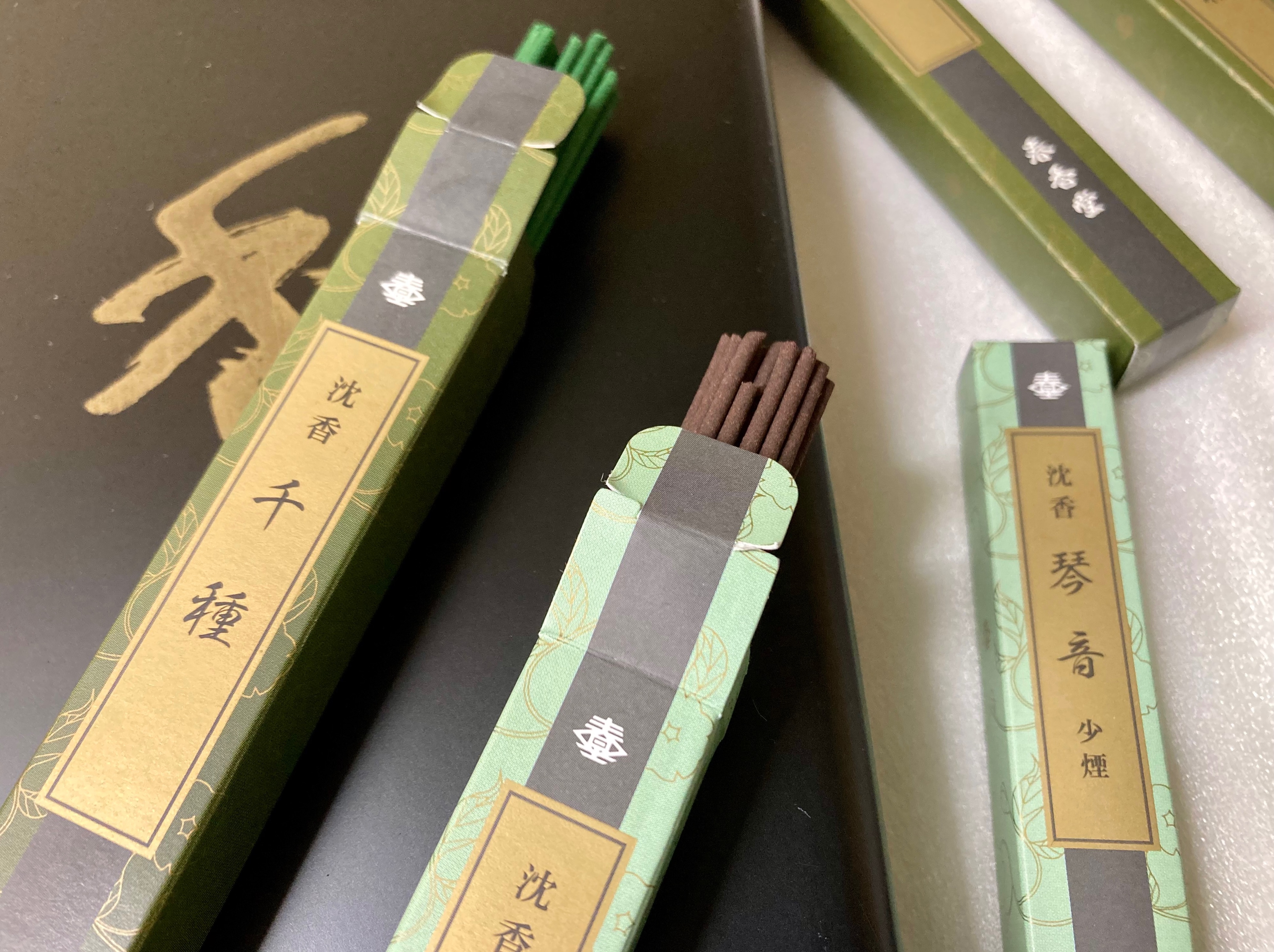 〝千種〟は高級沈香のお線香で、厚みのある深い香りがします。残り香がとても良いので、落ち着いた雰囲気が広がります。