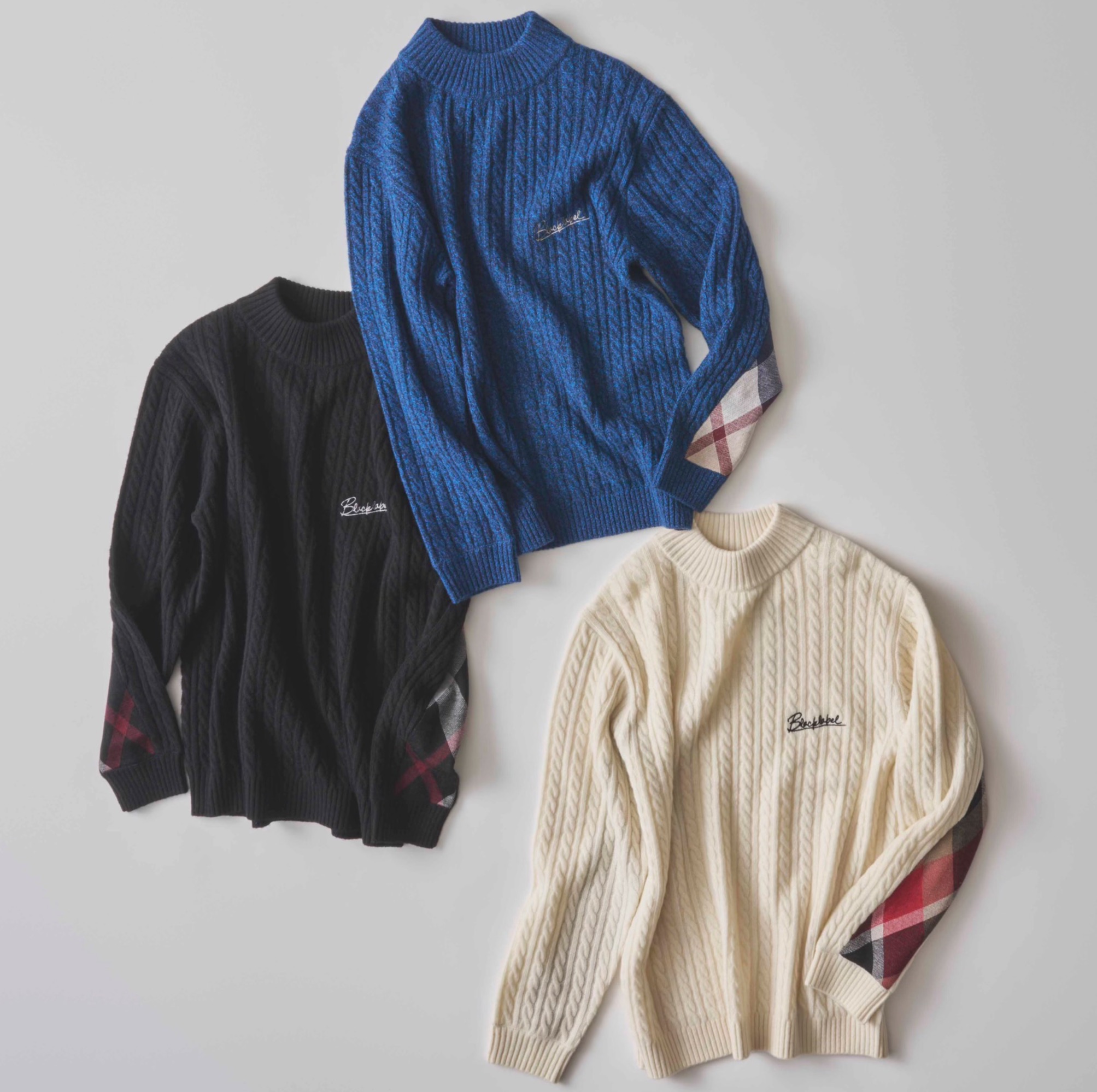 冬の定番ケーブルニット。サイドにさり気なく入ったチェック柄がアクセントです。