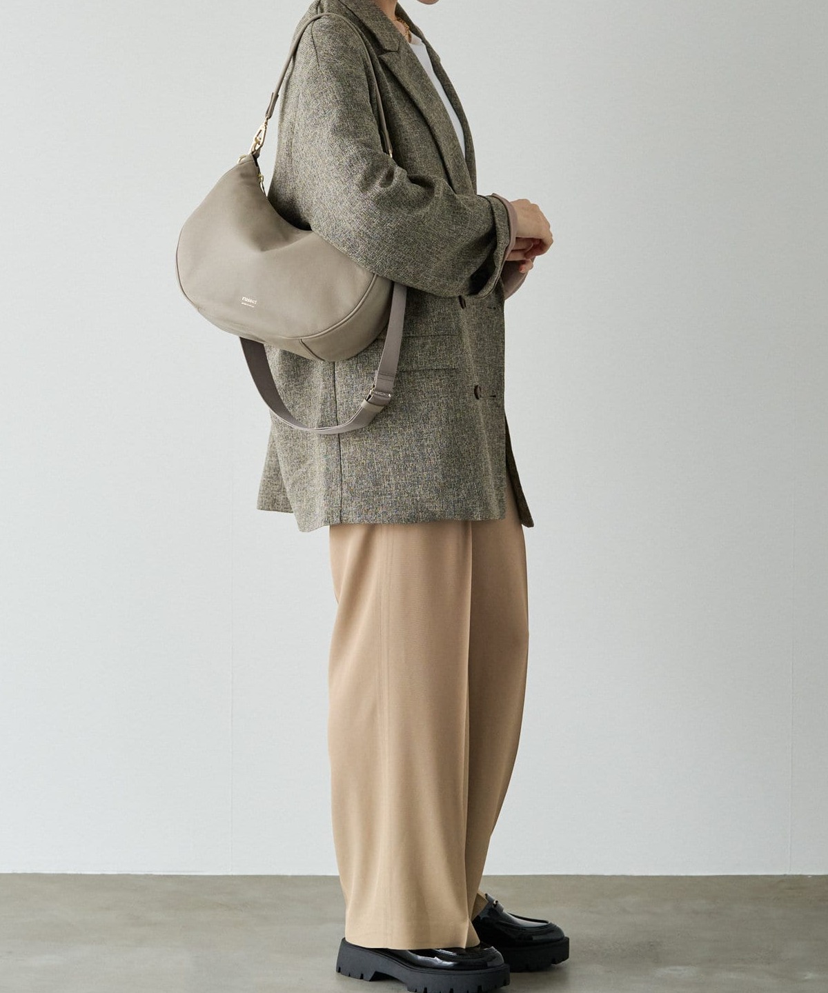 長さの違う2本のベルトがついており、シチュエーションやコーディネートにあわせて持ち方を変えて楽しめます。