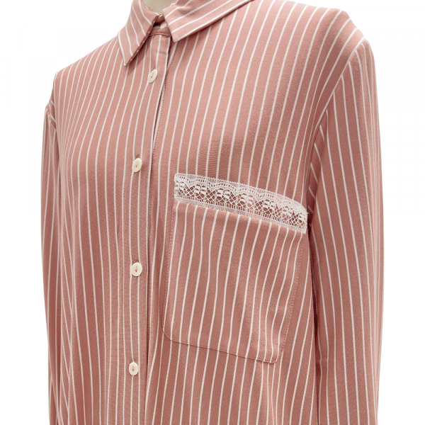 ストライプと胸ポケットのレース使いが絶妙なアクセント
