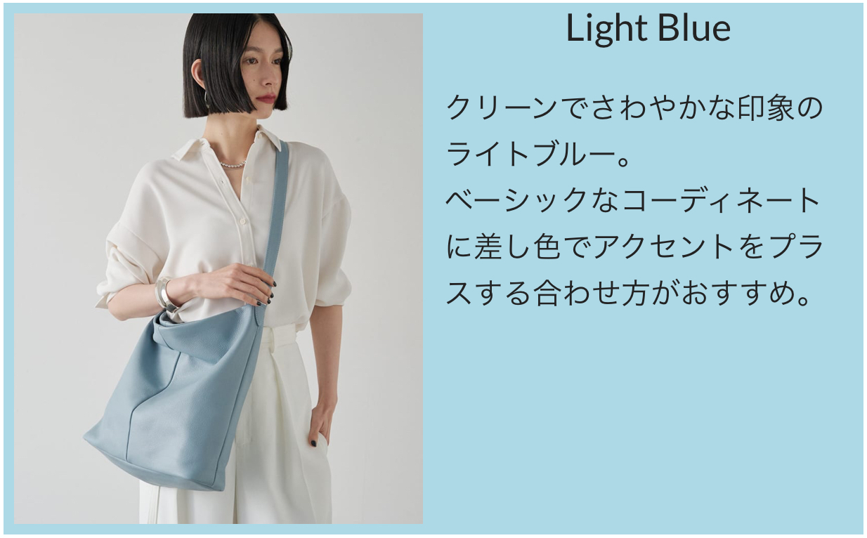 ロングベルトを好みの長さで結んで気軽に持ち方を楽しんでいただけるデザインとなっています。