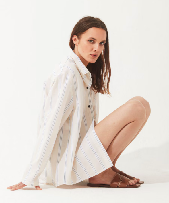 高品質で柔らかな綿素材にさわやかなストライプ柄