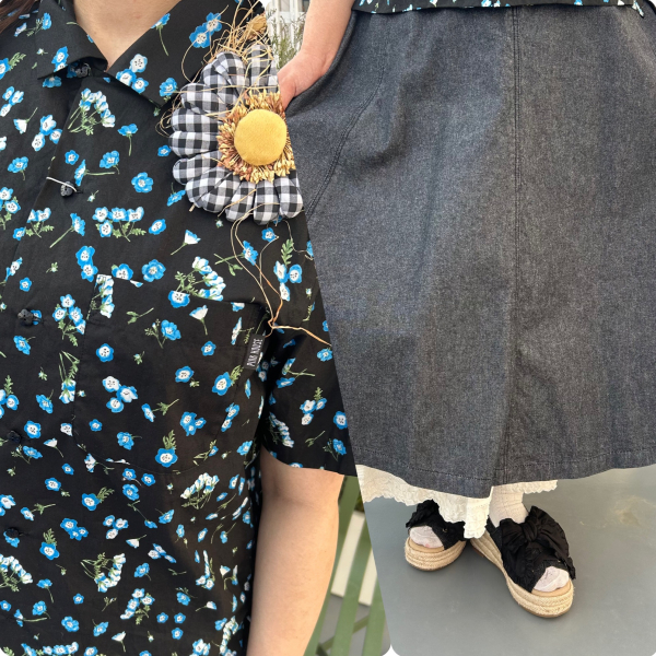 バックのデニムとギンガムの切り替えデザインが印象的なデニムスカート👗