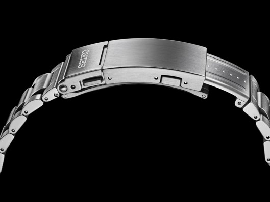 新たに開発した中留は、簡単な操作でブレスレットのサイズ調整が可能です。最大約15mmの調整幅があり、着用した状態で中留を閉じたまま、サイドにあるボタンを両側から押すことで、長さを簡単に伸縮させることができます。