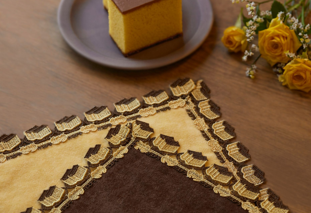 福砂屋のカステラをモチーフにした上品なデザインで、福砂屋の商標の蝙蝠(こうもり)